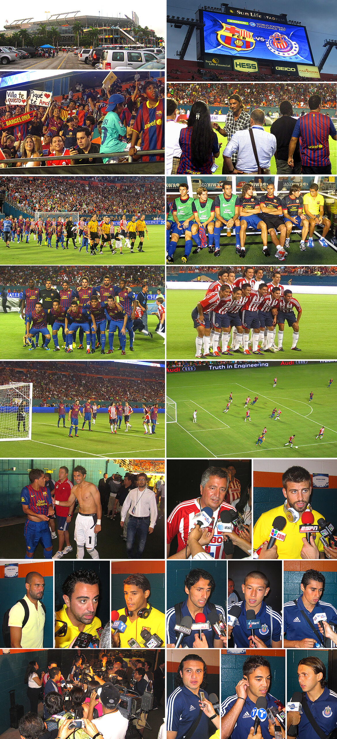 Solamente tres jugadores del Barcelona se detuvieron para hablar con la prensa: Xavi, Piqué y Jonathan Dos Santos, mientras que los demás jugadores, a pesar de los pedidos de los periodistas para obtener algunas declaraciones, siguieron de largo y no dieron entrevistas. Por su parte, todos los jugadores de Chivas dialogaron con la prensa y los más requeridos fueron el guardameta Michel y la gran estrella de la noche: Marco Fabián.