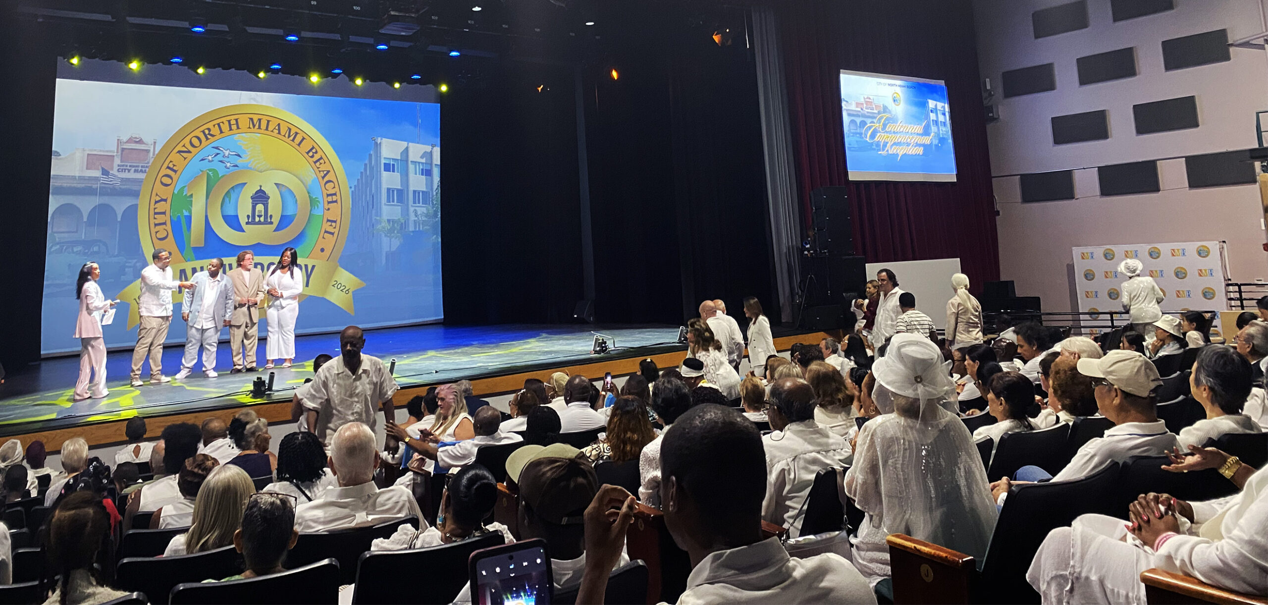 El pasado sábado 4 de octubre, la ciudad de North Miami Beach celebró con gran entusiasmo la Recepción Inaugural del Centenario, un evento especial dedicado a la presentación del logo oficial que se usará en la conmemoración de los 100 años de su fundación, la cual se celebrará oficialmente el próximo año. La celebración tuvo lugar en la sede de la municipalidad, donde residentes y autoridades se reunieron vestidos de blanco, tal como indicaba la invitación.