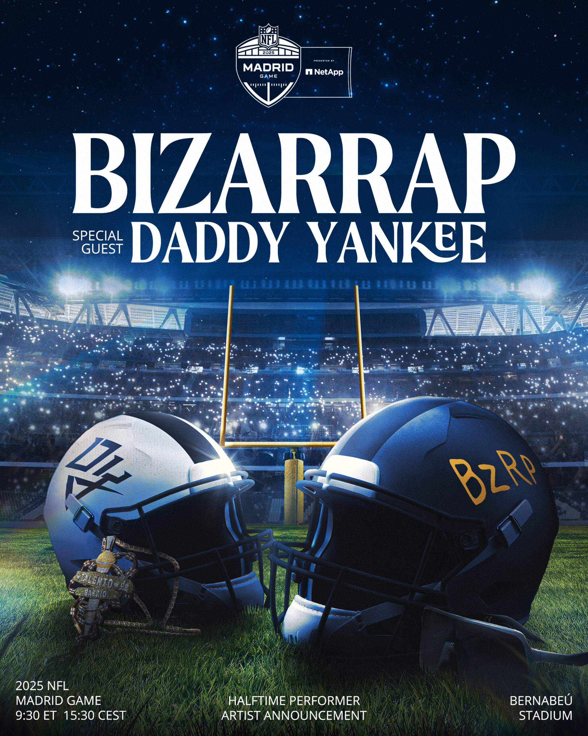 El espectáculo de medio tiempo estará encabezado por el fenómeno global BIZARRAP y el ícono de la música latina Daddy Yankee. La dupla presentará en vivo por primera vez su nueva colaboración “BZRP Music Sessions, Vol. 0/66“, marcando el esperado regreso de Daddy Yankee a los escenarios. Este evento representa un momento cultural significativo, que une a dos grandes audiencias globales, la de la NFL y la de la música latina, en un momento en que la influencia de los artistas latinos continúa creciendo en todo el mundo.