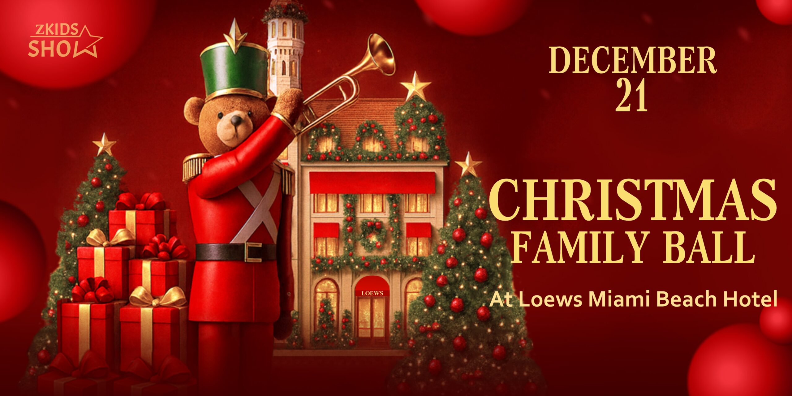 Este 21 de diciembre, el Loews Miami Beach Hotel de South Beach se convertirá en el escenario de un evento mágico para toda la familia: Christmas Family Ball. A partir de las 3:00 pm, las familias están invitadas a sumergirse en un mundo de fantasía y elegancia, con un espectáculo único que incluye a Santa Claus y la Sra. Claus.