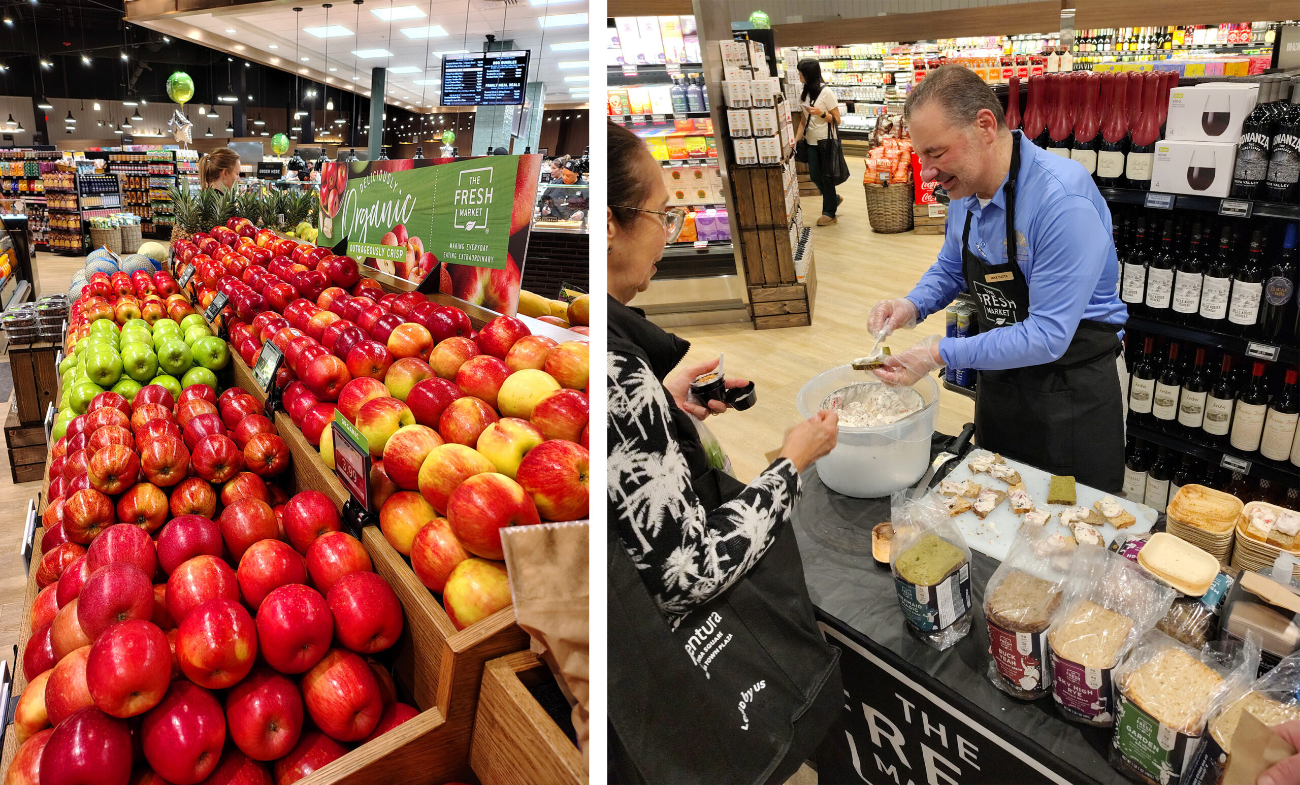 Durante la jornada inaugural, los primeros visitantes recibieron bolsas reutilizables conmemorativas y elegantes orquídeas como obsequio. Uno de los momentos más celebrados fue la apertura de una rueda de queso Parmigiano Reggiano de más de 80 libras, acompañada de degustaciones gratuitas. La música en vivo y las muestras gastronómicas distribuidas por toda la tienda completaron una experiencia festiva que se extendió durante todo el fin de semana.