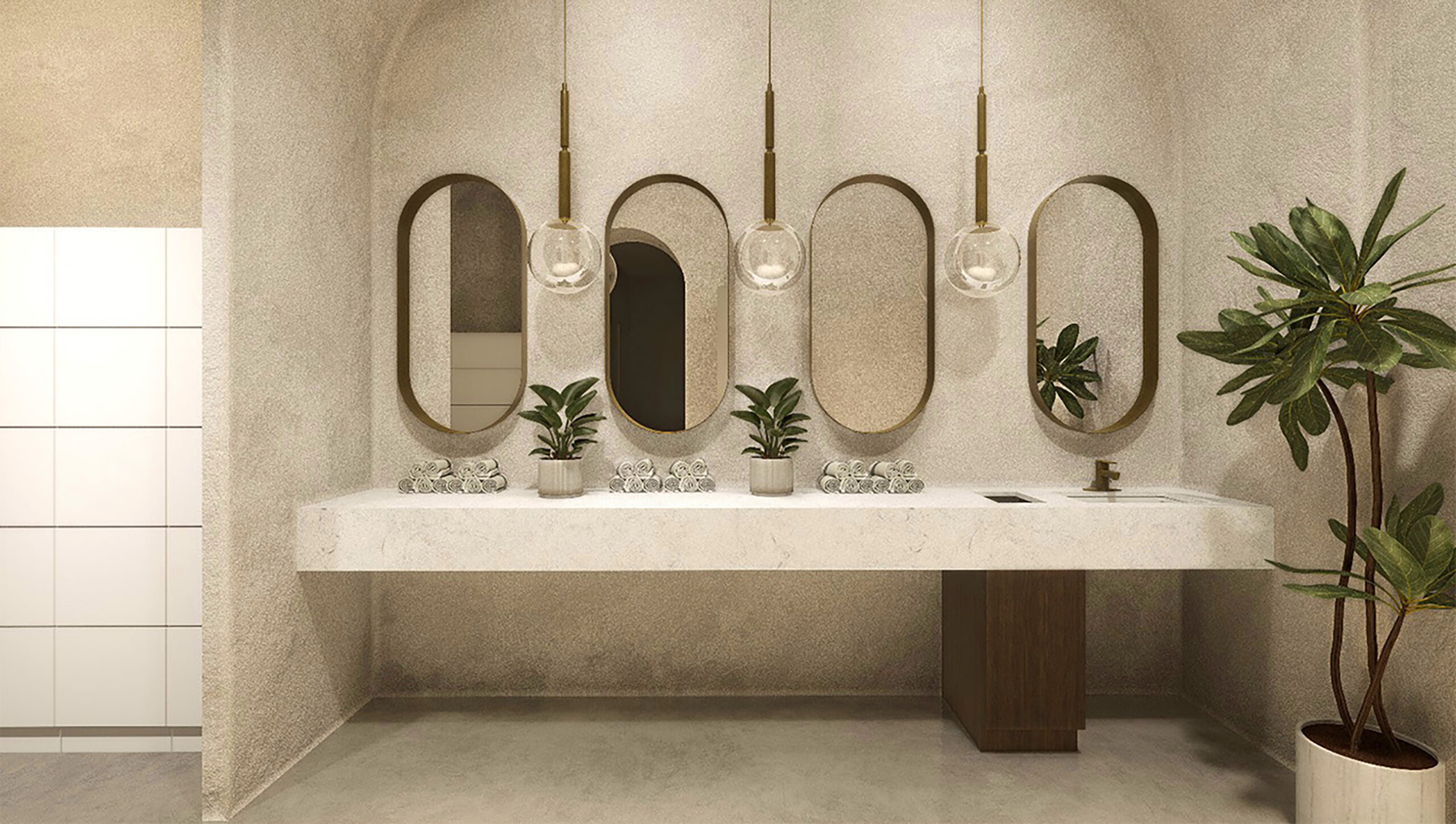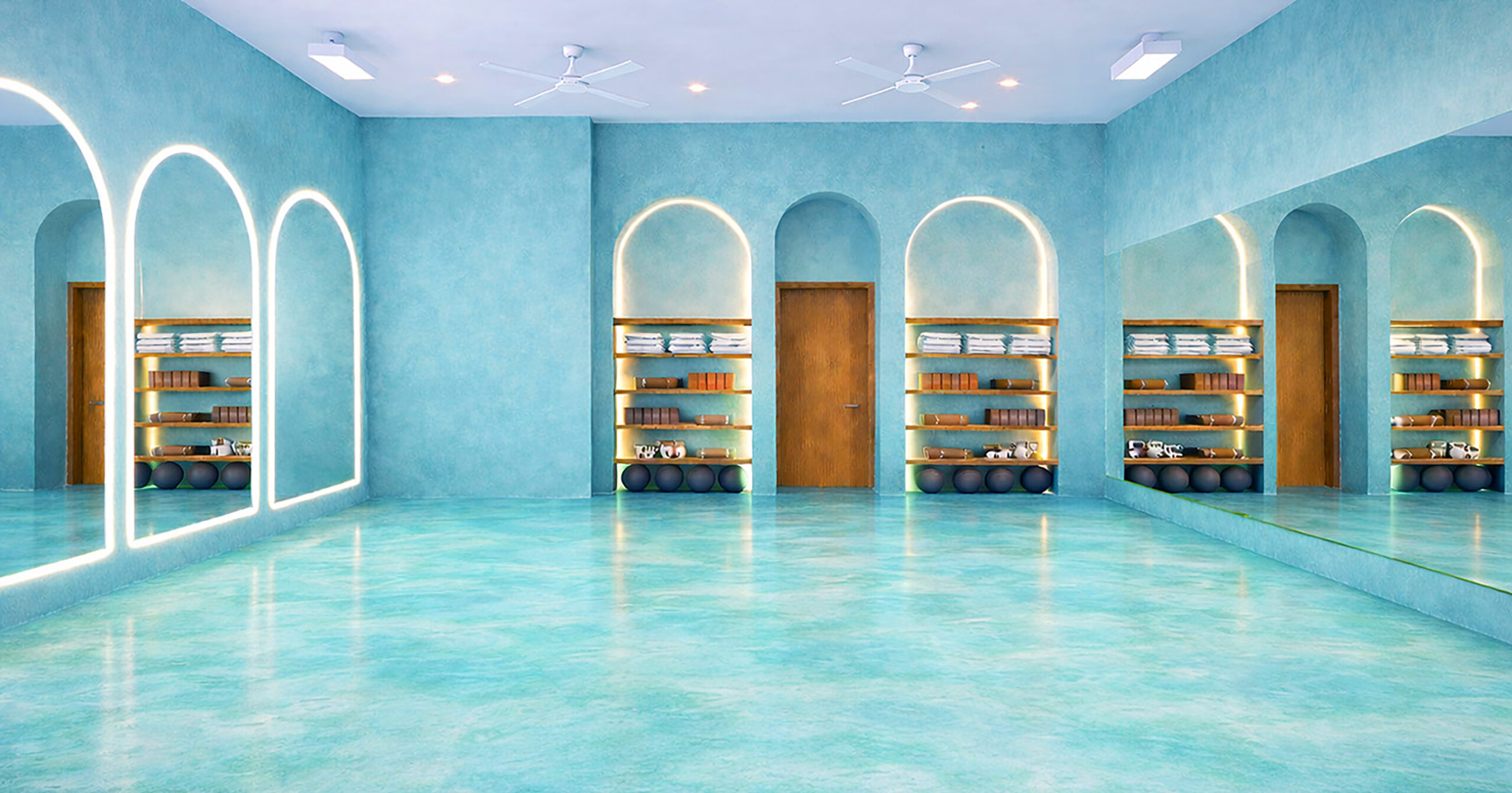Entre sus instalaciones destacan un área de tocador con encimeras de mármol, espejos ovalados y lámparas colgantes, así como dos baños equipados con duchas y amenidades completas. La sala principal de entrenamiento, diseñada para recibir a 40 personas, incluirá arcos iluminados y un muro dedicado a accesorios como bloques de yoga, aros de pilates, bandas y pesas.