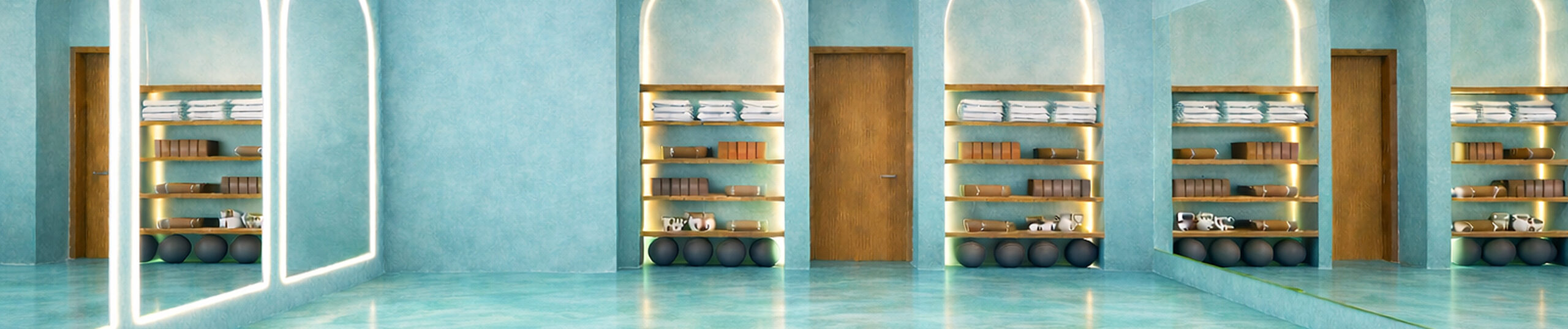 Entre sus instalaciones destacan un área de tocador con encimeras de mármol, espejos ovalados y lámparas colgantes, así como dos baños equipados con duchas y amenidades completas. La sala principal de entrenamiento, diseñada para recibir a 40 personas, incluirá arcos iluminados y un muro dedicado a accesorios como bloques de yoga, aros de pilates, bandas y pesas.